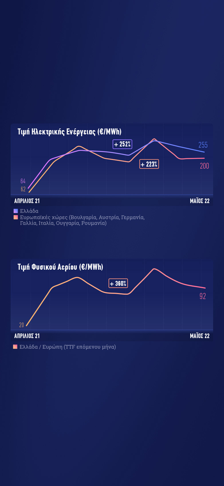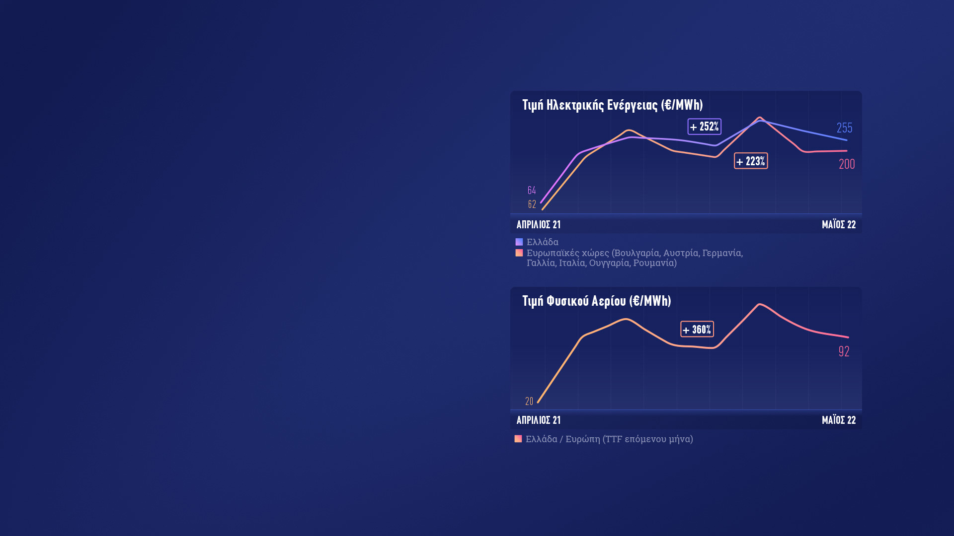 The cost of natural gas has increased fivefold, while the respective electricity costs have tripled; as a result, energy bills have gone up from all suppliers and for all consumers, both in Greece and in the wider region of Europe.